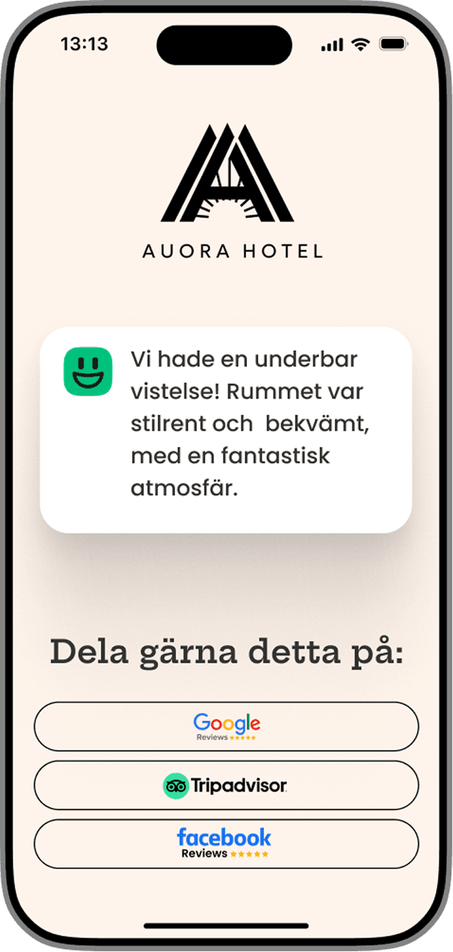 With Sponda, you give yourself the chance to convert a satisfied guest into a promoter and turn a negative experience into something positive before it reaches public channels.